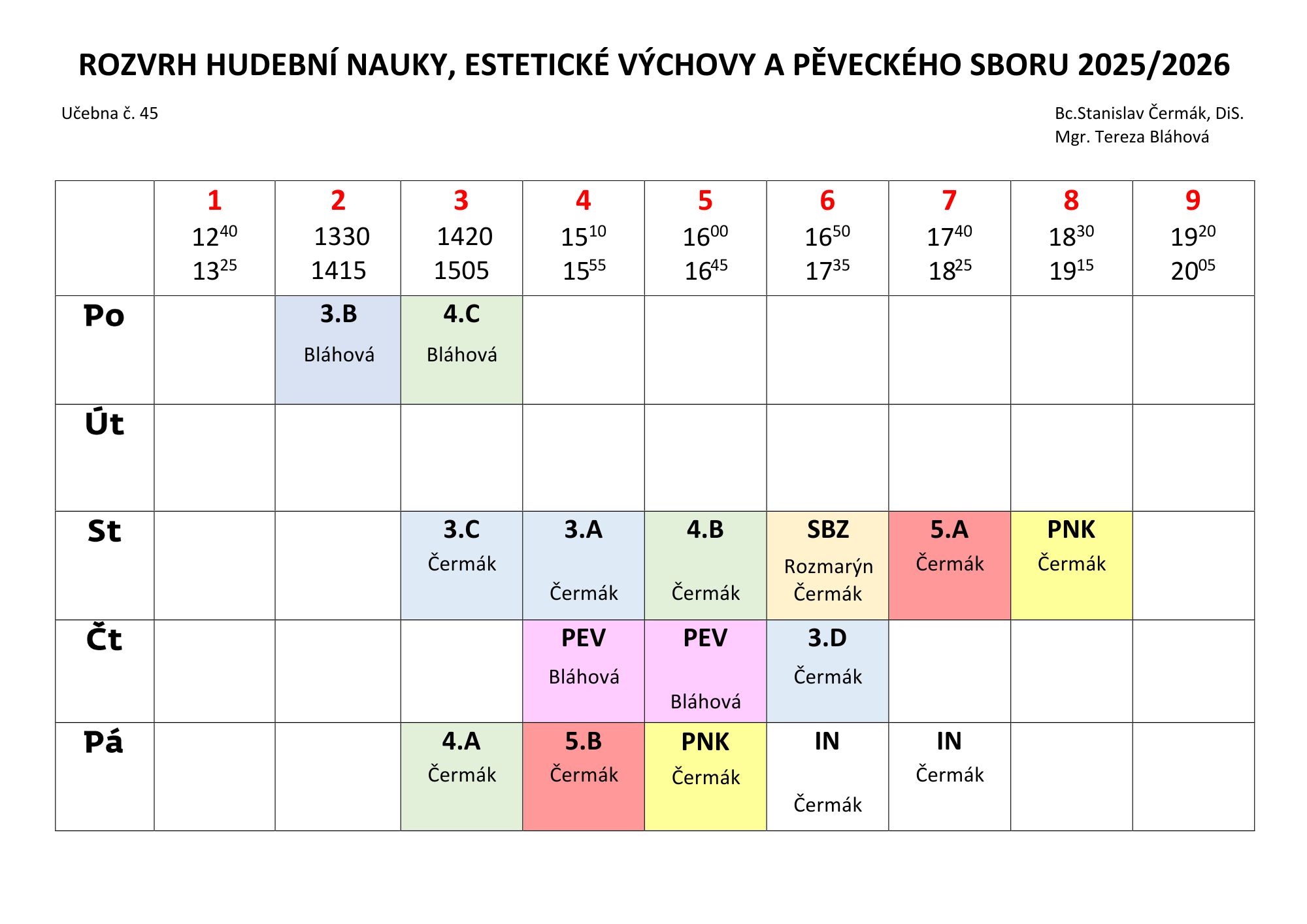 Rozvrh hudebních nauk a přípravné estetické výchovy je již k dispozici.