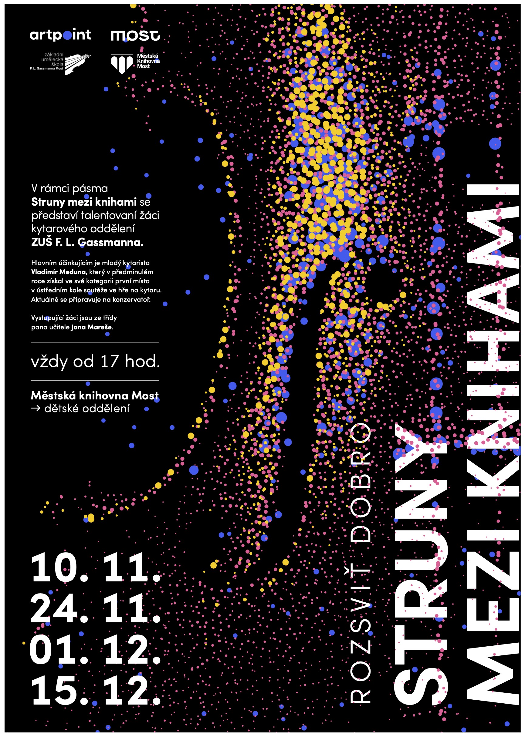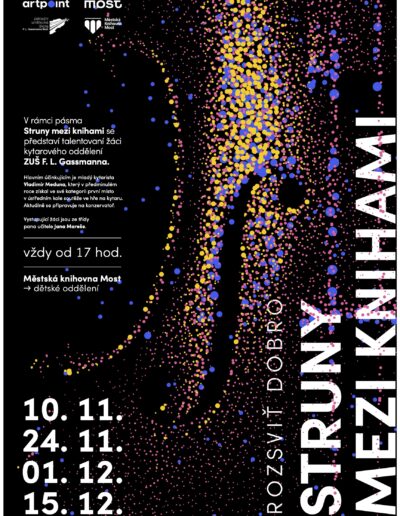 Ve spolupráci s Městskou knihovnou Most a dětskou galerií ART Point vystoupí v rámci pásma Struny mezi knihami talentovaní žáci kytarového oddělení ZUŠ F. L. Gassmanna.